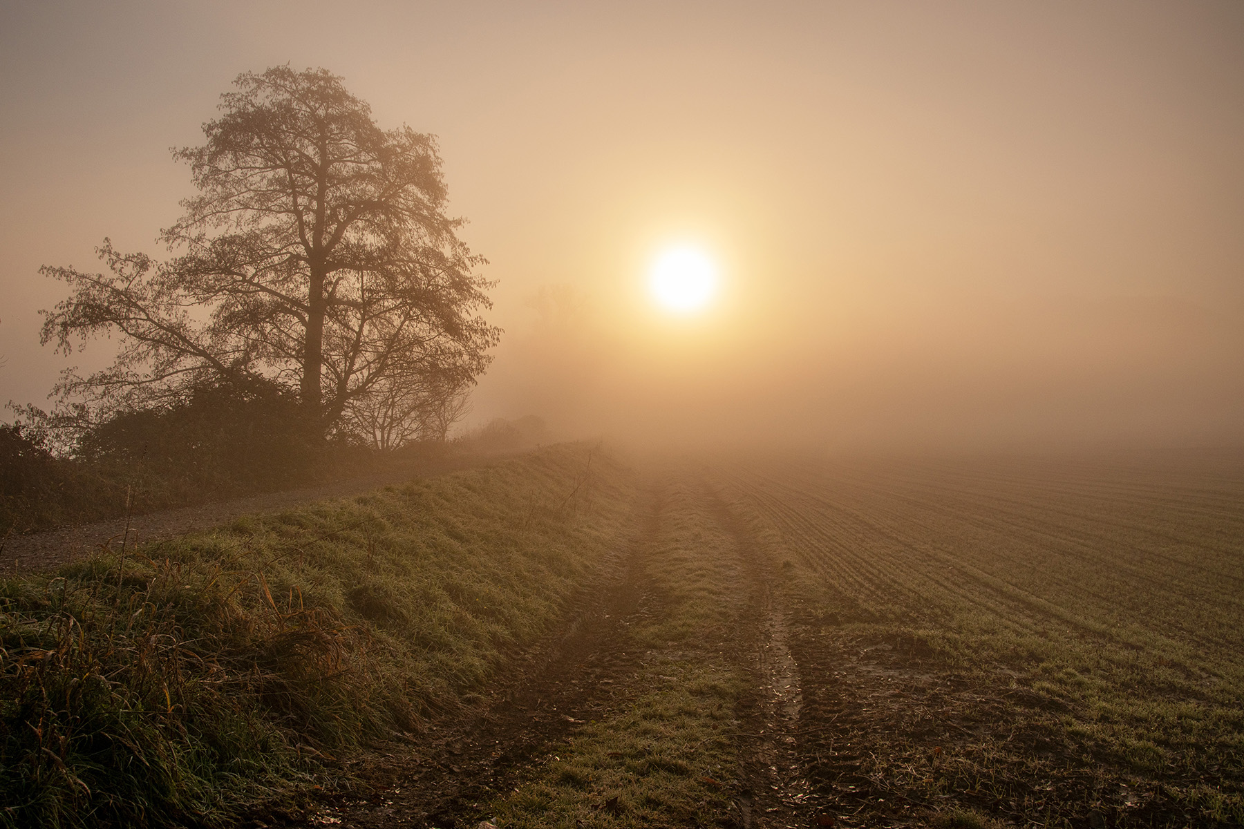 Le linee dei campi, l'albero, tutto converge nella ovattata atmosfera con al centro il sole che ipnotizza lo sguardo. Ottima proposta