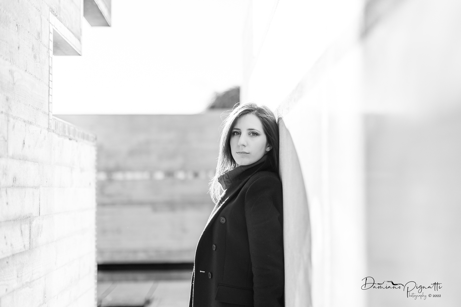 L'idea del ritratto ambientato mi piace. Il grigio chiaro dello sfondo e il bianco ai lati porta a concentrarti sulla figura in nero della modella. Anche la striscia grigia in diagonale, che finisce sulla testa, ha la medesima funzione. Così anche il muro a sx che restringe lo spazio e la visuale sulla modella assolve bene il compito. L'ambiente, grazie alla sfocatura, non è invasivo e si armonizza con la modella. Mi piacerebbe vedere altri scatti ambientati nel medesimo luogo e con la modella meno statica. _________________ Giuseppe |
