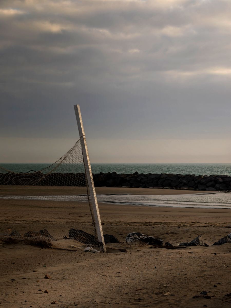 Per renderla più consona al periodo (e al titolo) avrei optato per una ripresa più ampia, con palo e rete minimali in un’ampia spiaggia deserta… Mi piacciono comunque i toni cupi e polverosi