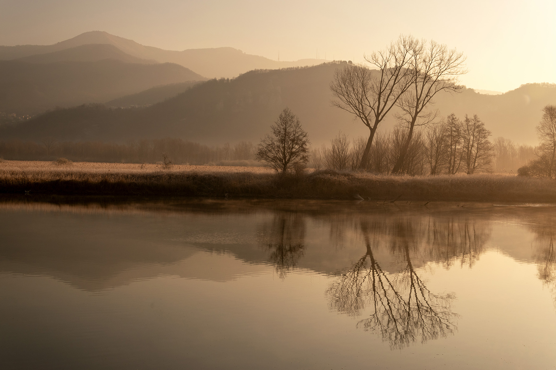 | toni splendidi e bella composizione però sbaglio o è storta? il riflesso dovrebbe essere simmetrico e dall'alberello a dx bordo frame non sembra |