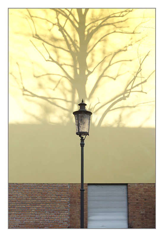Uno scatto pulito presentato in versione elegante. Protagonisti luce e ombre con l'albero (l'ombra) che sembra il proseguimento del lampione. La visione dai colori caldi è molto bella. Brava Marisa _________________ Giuseppe |