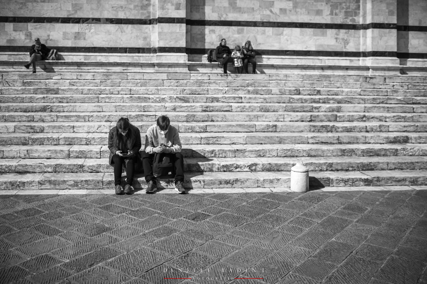 Mi piace come sono collocati i personaggi che formano una bella triangolazione. Bene anche il bn, scatto piacevole