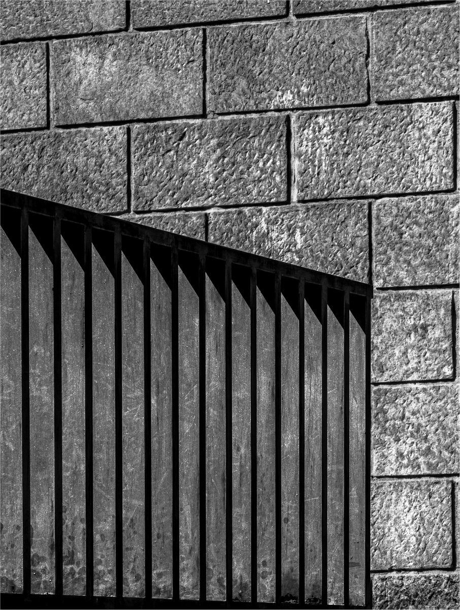 Gradevole distribuzione geometrica di forme e materie Forse un po’ cupo il bianco e nero, ma l’immagine è molto interessante