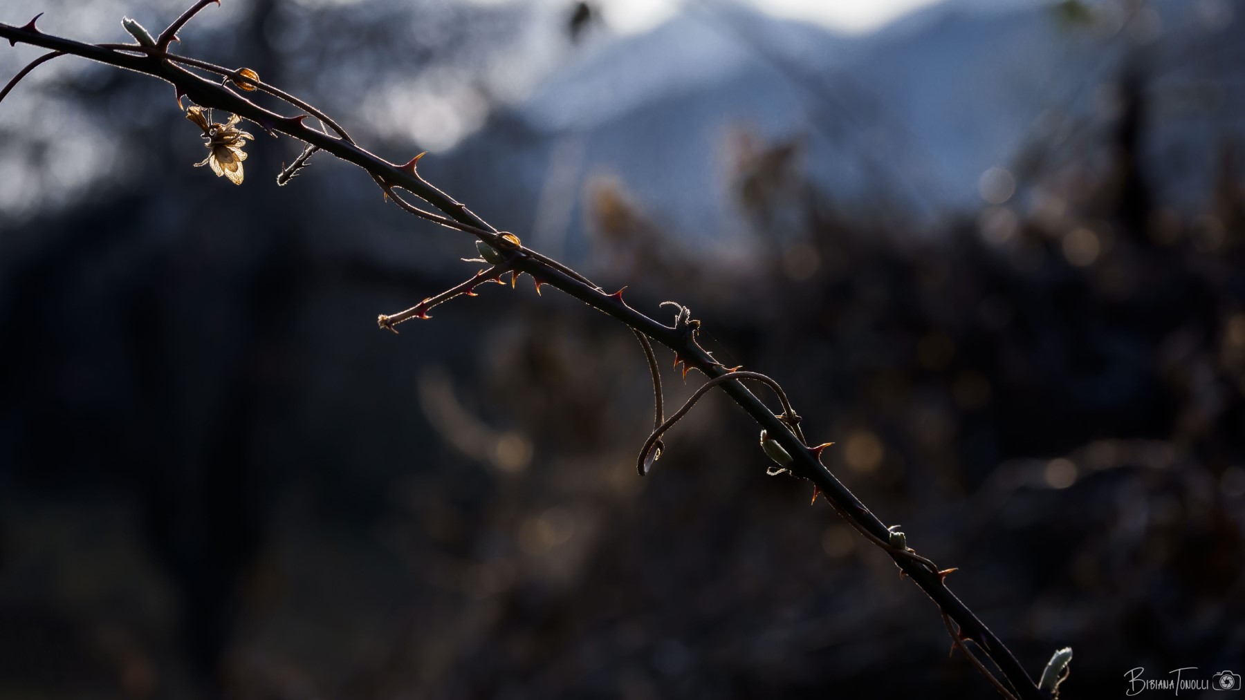 | Mi piace la luce che disegna i contorni di questo rametto . |