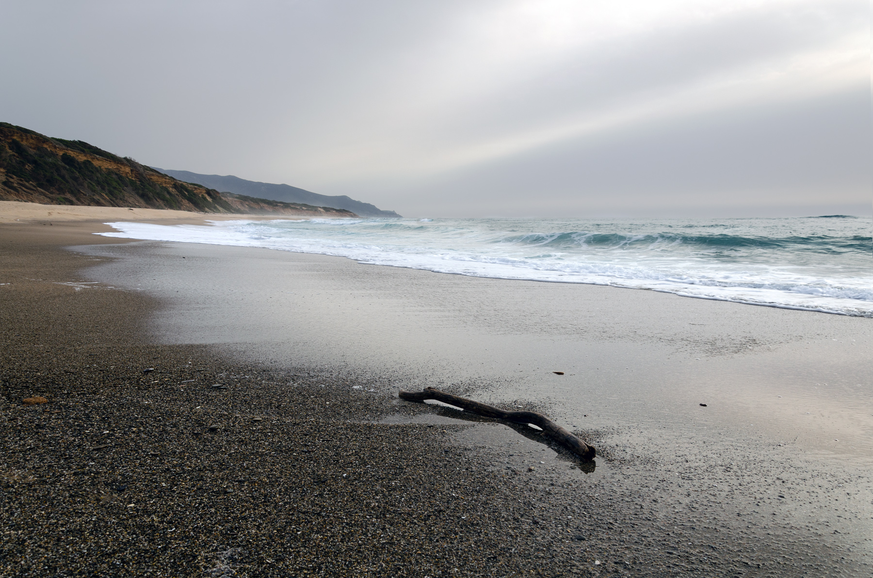 aria, mare, terra, niente piu'. Unico segno di vita un ramo secco depositato dalle onde sulla spiaggia. Fasci di luce nel cielo, colori pastello tenui e delicati che si scontrano con lo sabbia scura