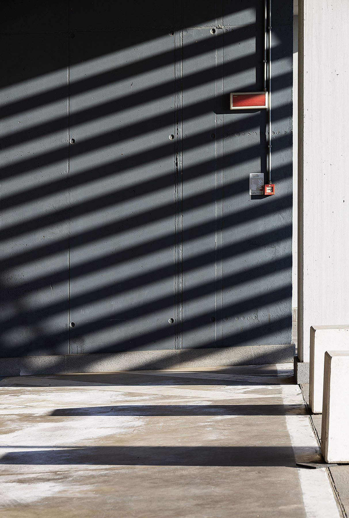 A me piace questo gioco di luci e ombre. Bello anche il contrasto tra le ombre proiettate sul muro grigio e quelle proveniente dalle colonne. Solo che avrei tagliato le ombre provenienti dalle colonne in modo da dare il senso di continuità come succede con quelle sul muro grigio _________________ Giuseppe |
