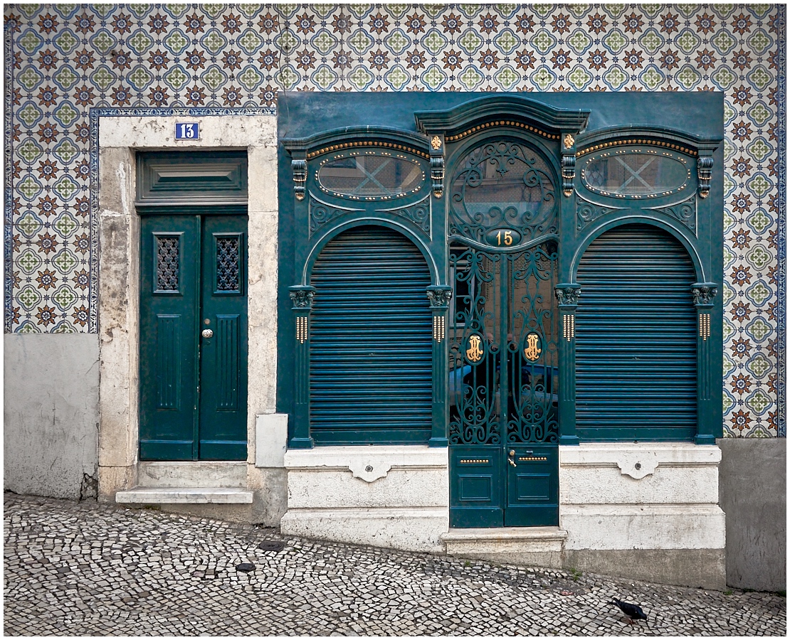 Buona la composizione. Il colore verde-blu petrolio è molto bello e conferisce uno charme particolare alla facciata di questo negozio. Ciao, Tiziano. Bella |