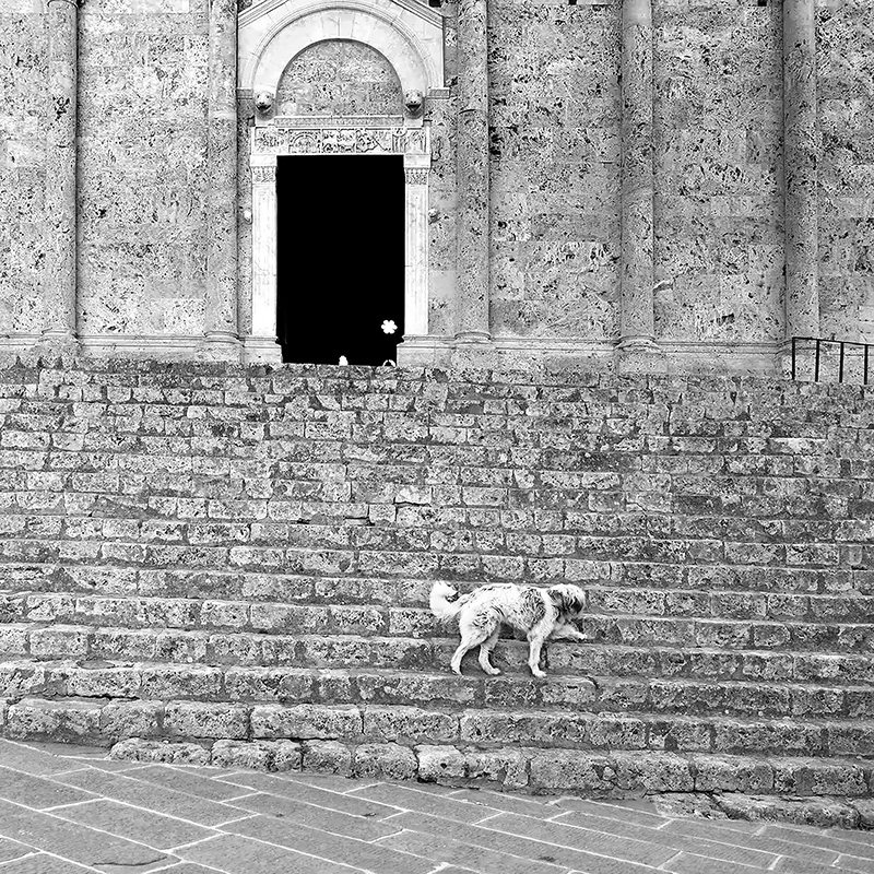 Molto particolare la posa del cane che sembra cercare qualcosa sulla gradinata che porta alla chiesa.Ottimi taglio e composizione,bello il bn. Ciao,Sergio. _________________ Sergio Demitri https://www.flickr.com/photos/124946035@N02/ |
