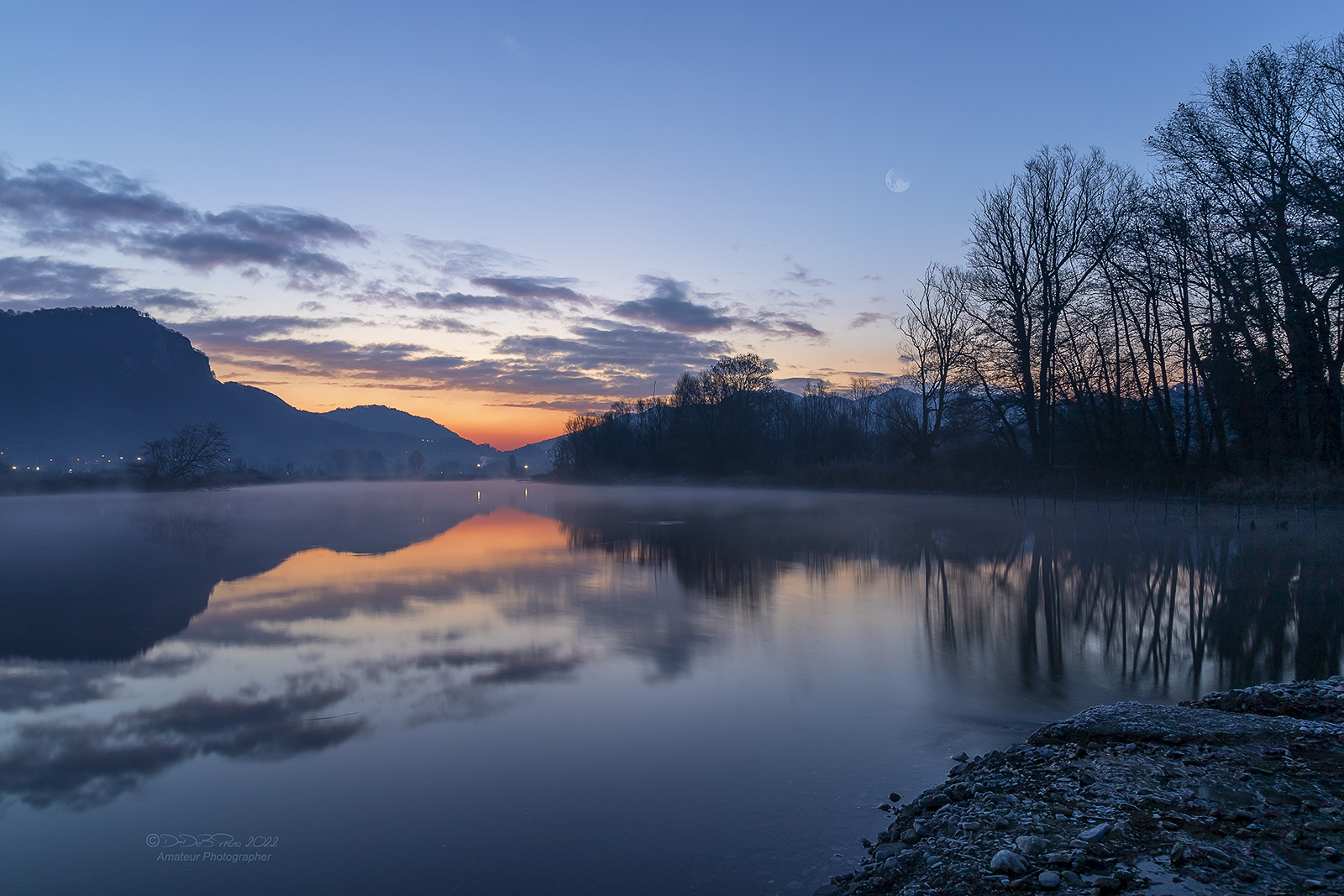 Non so se ora blu o alba ma molto suggestiva, e anche la luna li in alto contribuisce.