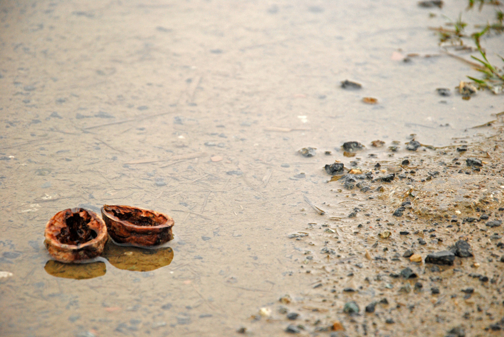 Dopo smessa la pioggia scesi di macchina per camminare lungo questa stradina in mezzo ai campi che non portavo molto lontano e per fare due scatti lì intorno. Ad un tratto mi trovai davanti questa situazione che scorsi anche con una certa meraviglia tanto che a volte mi viene da pensare al destino. Mi fece riflettere questa cosa perchè sembrava che qualcuno in qualche maniera mi avesse voluto far passare di lì per mandarmi un segnale, un messaggio. Questi due gherigli di noce assunsero così per me il significato di un invito al viaggio, ad imbarcarsi, a salpare. Ecco così spiegato anche il motivo del titolo scelto.