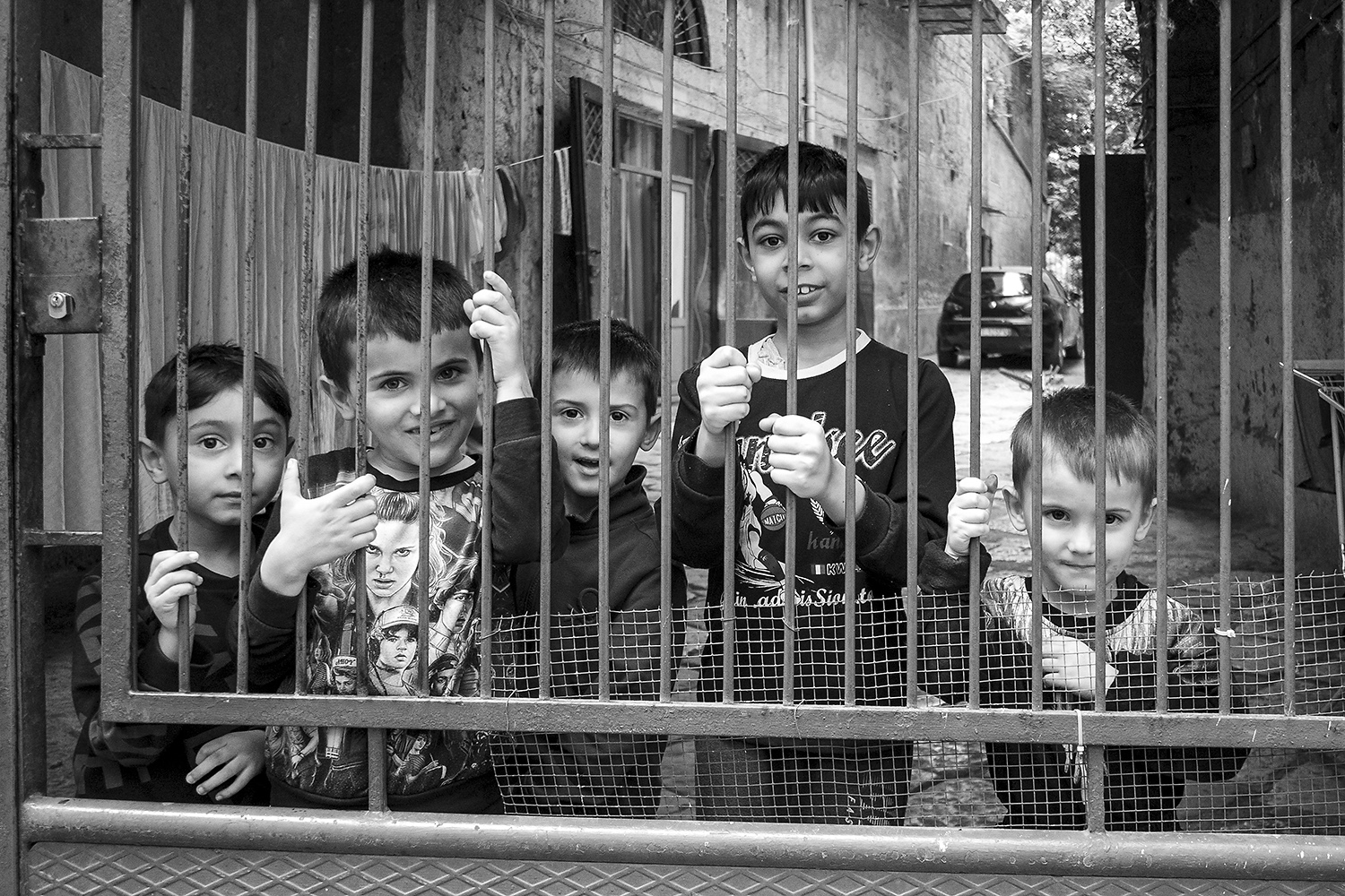 I bambini dietro le sbarre danno sempre una certa scossa, anche se sono quelle di un innocente cancello.