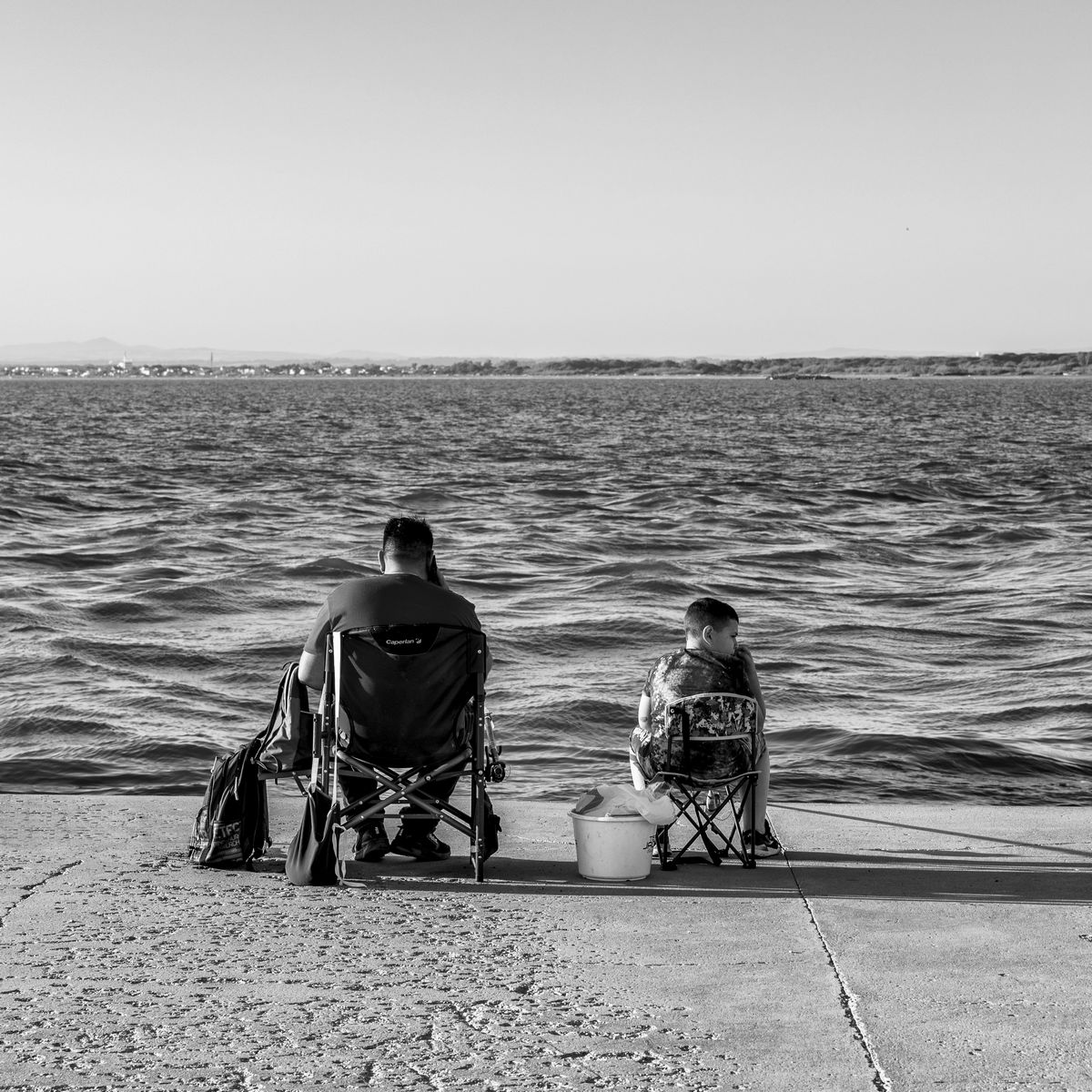 Emblematica… Padre e figlio a pesca insieme ma distanti nei pensieri… Ottima Molto bella anche la resa delle onde in un bianco e nero nitido e luminoso