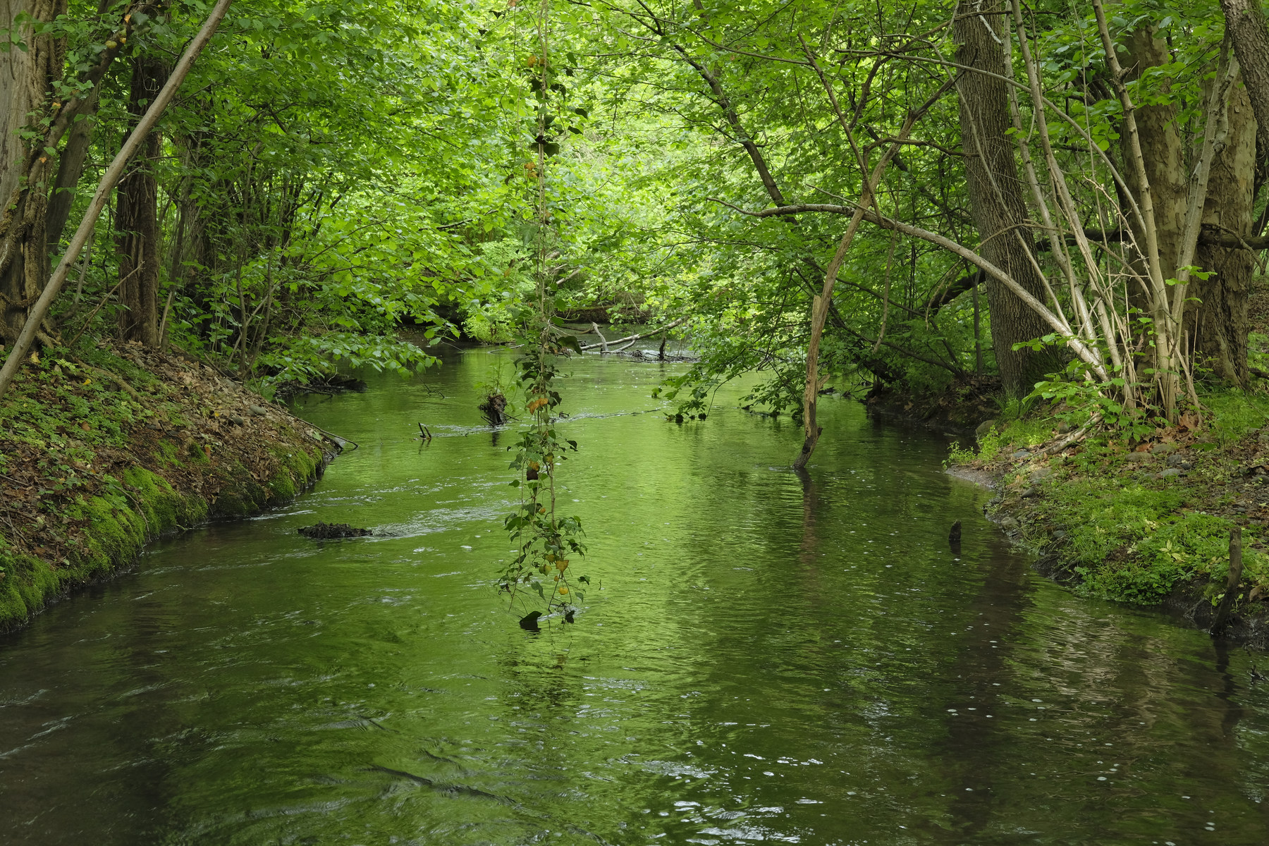 È bello lasciarsi andare in tanto verde, liquido in basso e frusciante sopra il capo. Se poi si ha avuto la fortuna di aver conosciuto i tranquilli rii dal di dentro a filo d’acqua nel silenzio di una lenta pagaiata, se ne apprezza ancor più la suggestione.
