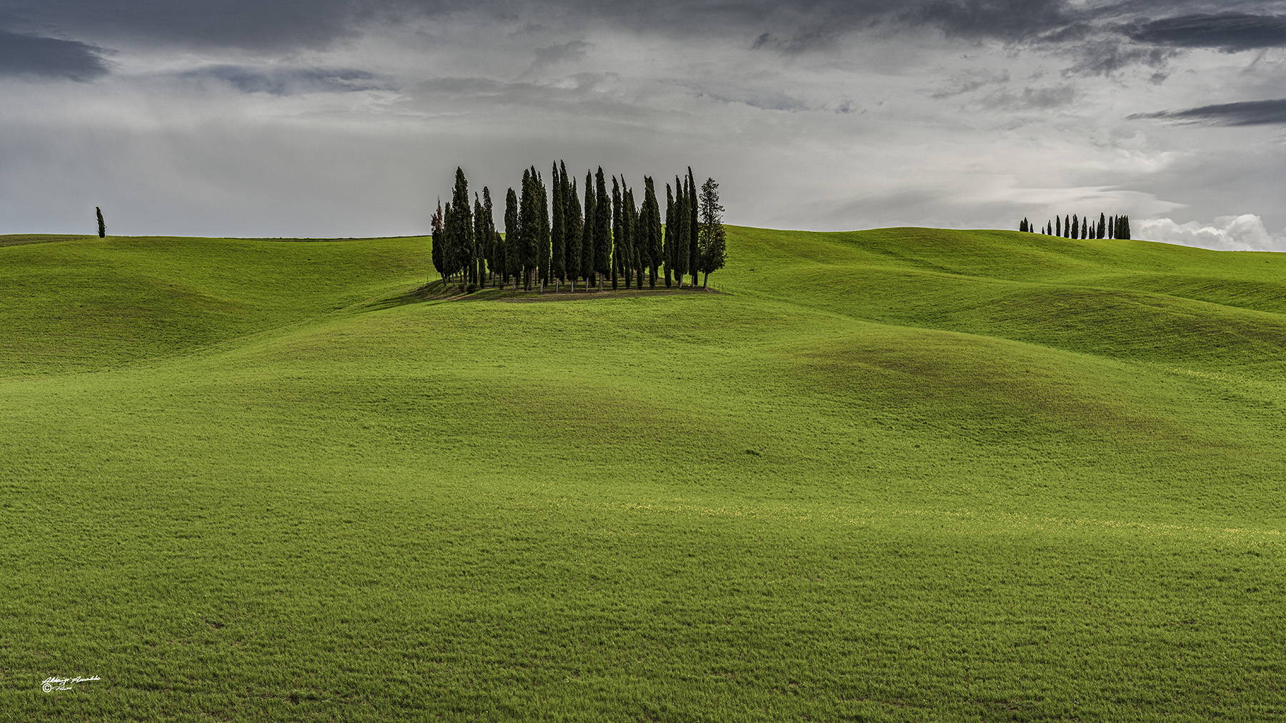 Le curve e le ondulazioni dei prati, un cielo interessante e un trittico di cipressi. Ottima!! _________________ Giuseppe |