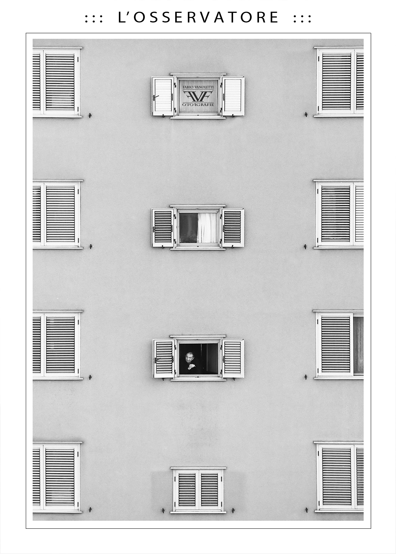 Per me è geniale. La rigorosa precisione, la simmetria, la rottura del ritmo con la persona, la firma incasellata nella finestra, l'elegante bianconero. Ottima e preferita _________________ Giuseppe |