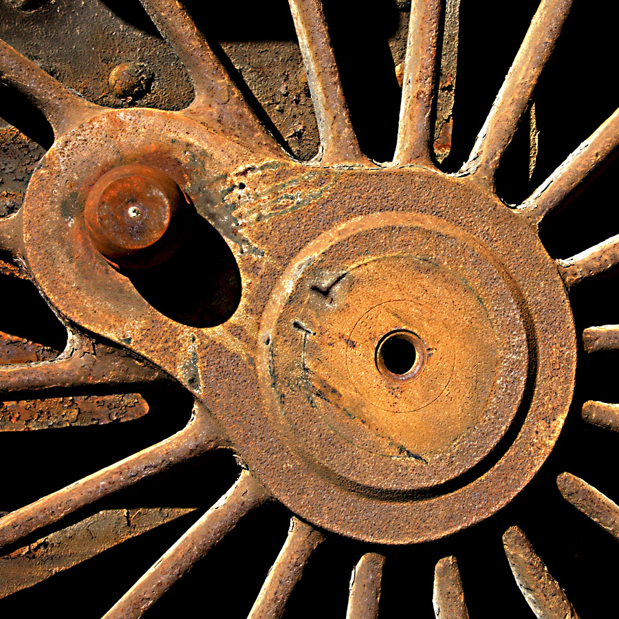 Un particolare particolare , scusa il gioco di parole. Un ingranaggio o ruota corrosi dalla ruggine che regala una bel tono di colore. Palpabile la resa materica.