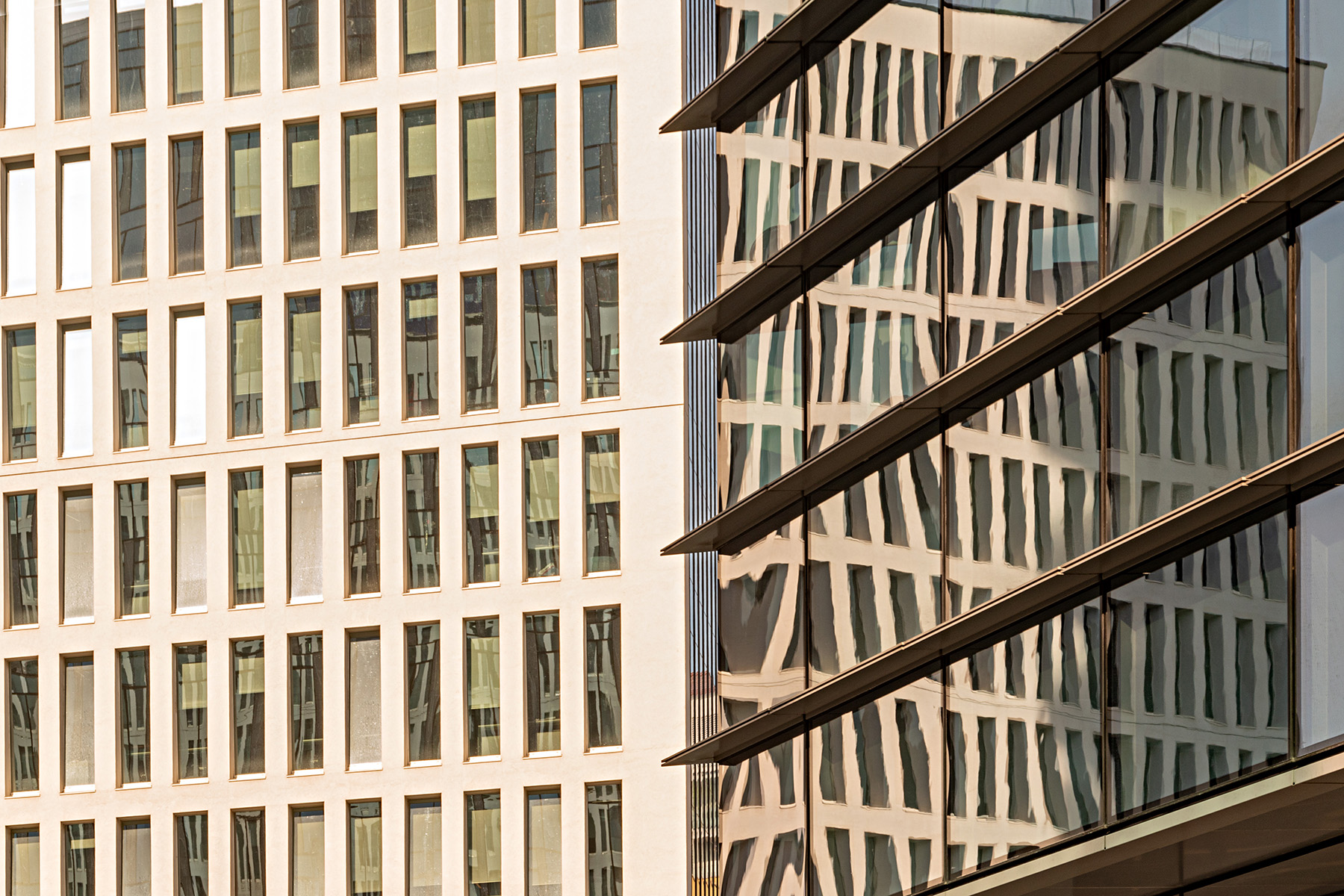 Una foto con colori vivaci ma non troppo e quindi dalla resa piuttosto naturale. Molto è affidato alla piacevole riflessione di elementi strutturali alcuni dei quali anche impreziositi dalla distorsione dei vetri.