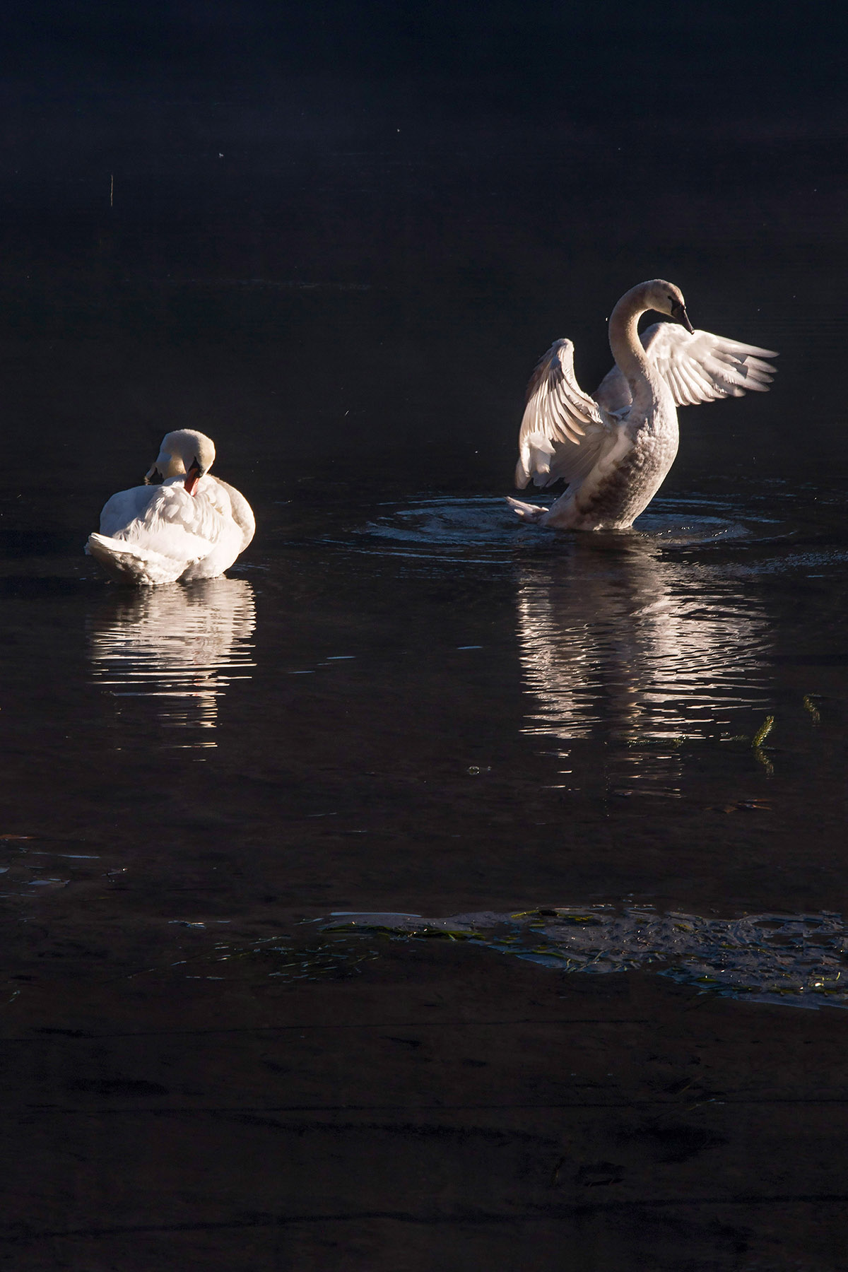L'idea del forte contrasto per fare riemergere i soggetti dal nero è intrigante però manca il dettaglio su parte del cigno di sinistra, pure il taglio verticale non mi entusiasma.