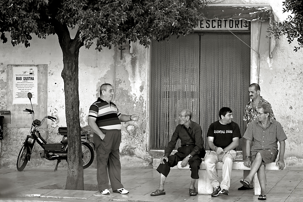 Ciao Marco, grazie del commento e dell'apprezzamento sentito. Sul fatto del motorino io la vedo un po' diversamente. Se non ricordo male lo scatto l'ho fatto nel 2007 durante il mio secondo giro di vacanze in Puglia e il Si, classico motorino della Piaggio già presente anche nei primi anni '80 attualizza lo scatto ma al tempo stesso a mio avviso sottolinea così per contrasto proprio quella bellezza dell'ambientazione sociale che nonostante i tempi recenti ha saputo mantenere certi caratteri e certe abitudini, posture e modi di stare in società che in Italia esistevano già negli anni '40 o '50 e che a mano a mano poi sono sparite.