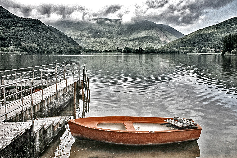 | Un paesaggio interpretato. Decisamente particolare, direi sperimentale. Si parte dal cielo ruvido e totalmente in bianco e nero per poi passare ad un leggero viraggio verde fino alla barca in primo piano nel suo colore pieno. Concordo con Max, audace. Buona idea per me. Un saluto, guido |