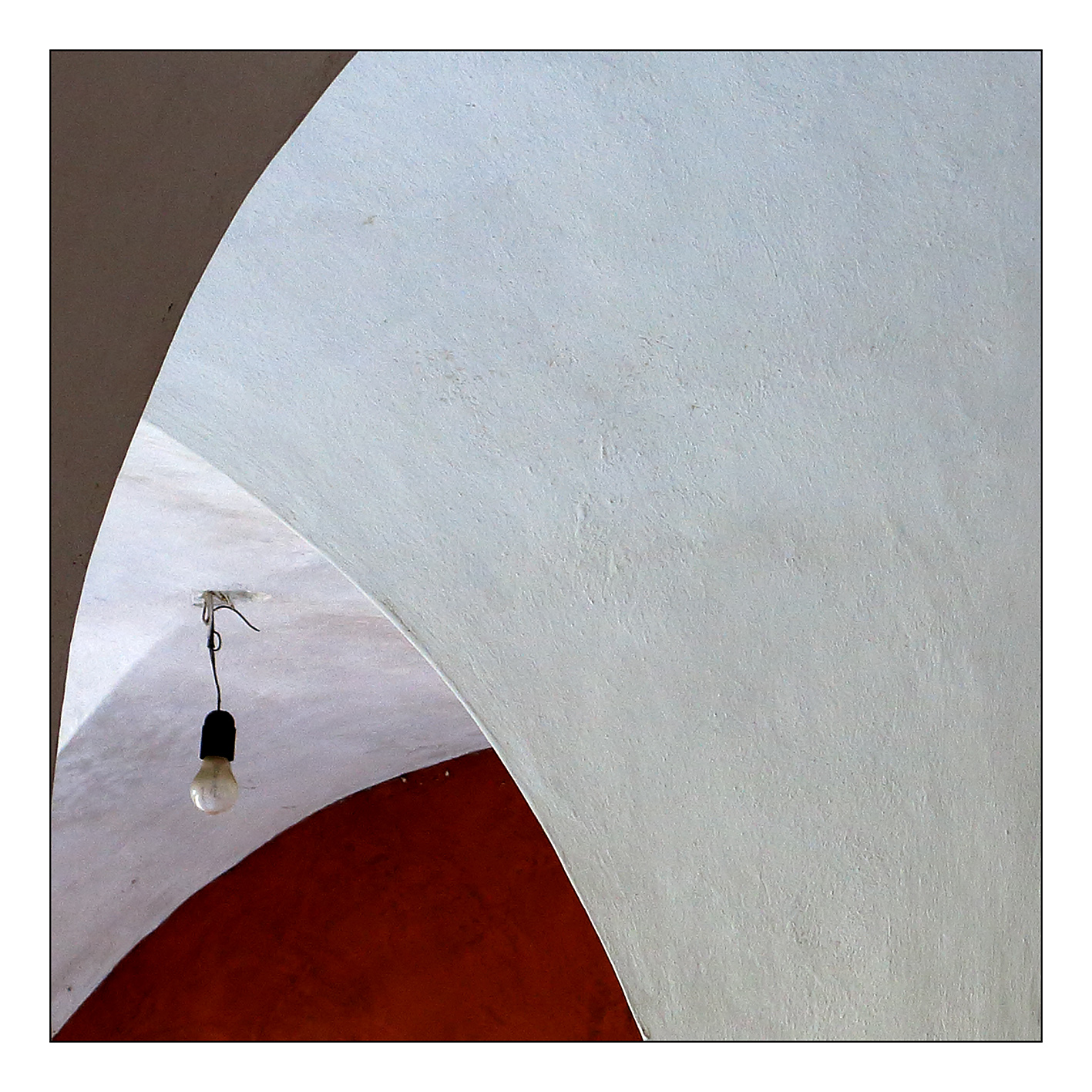 Bel gioco di linee curve, accentuato dai colori ben distribuiti ed equilibrato dalla lampadina Con pochissimo una buona foto , bravo!