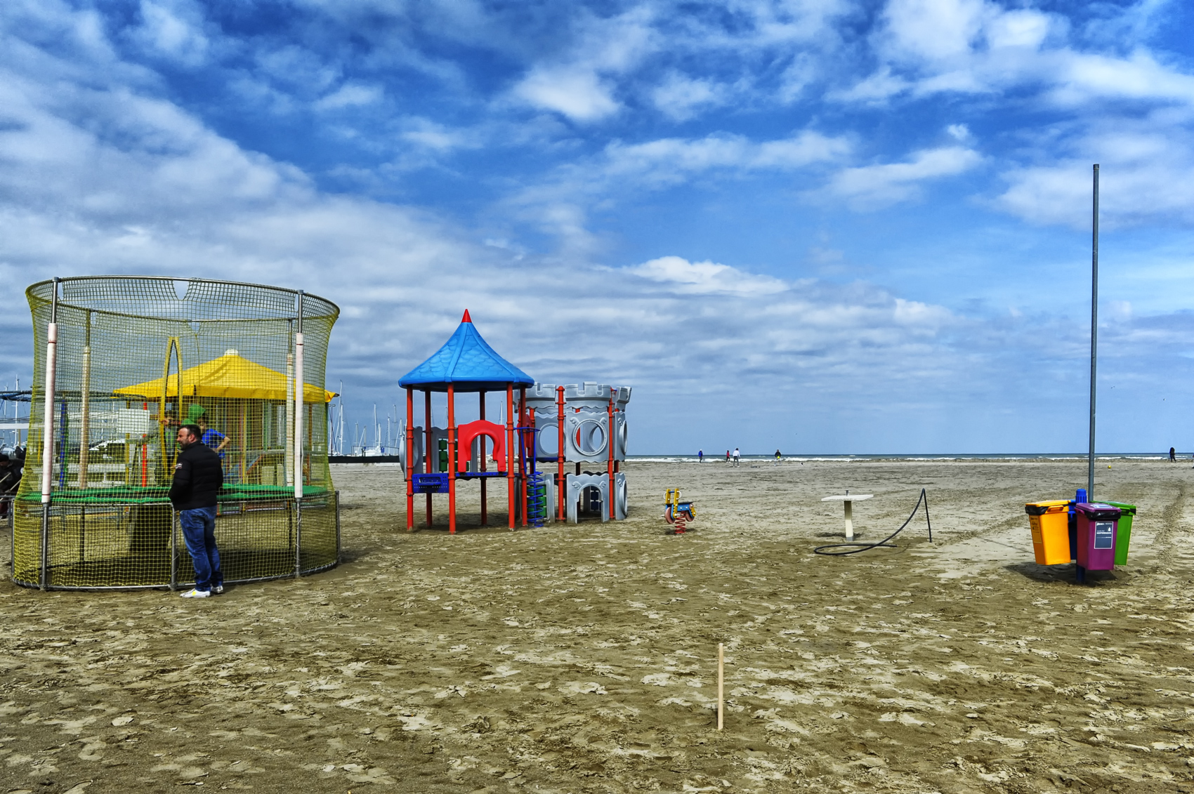 I colori e il bel cielo nuvoloso e la nitidezza, sono i pregi di questo scatto, ma secondo me ci sono troppi elementi che concorrono l'uno con l'altro per essere protagonisti dello scatto, valuterei un taglio o qualche stratagemma per isolare questo o quel soggetto...