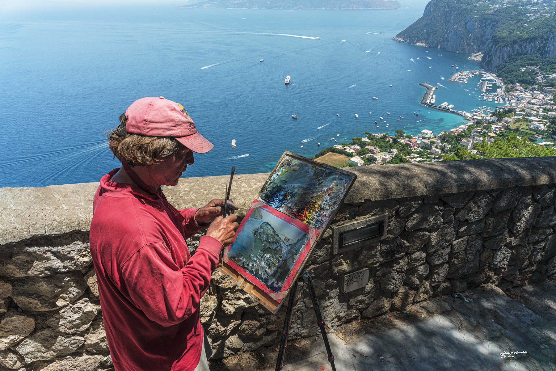 Bella veduta di Marina Grande di Capri con il pittore protagonista che ruba la scena.Sullo sfondo in alto si nota Punta Campanella che divide la Costiera Sorrentina da Quella Amalfitana.Piacevolissima immagine ricca di colore,grande profondità. Ciao,Sergio. _________________ Sergio Demitri https://www.flickr.com/photos/124946035@N02/ |