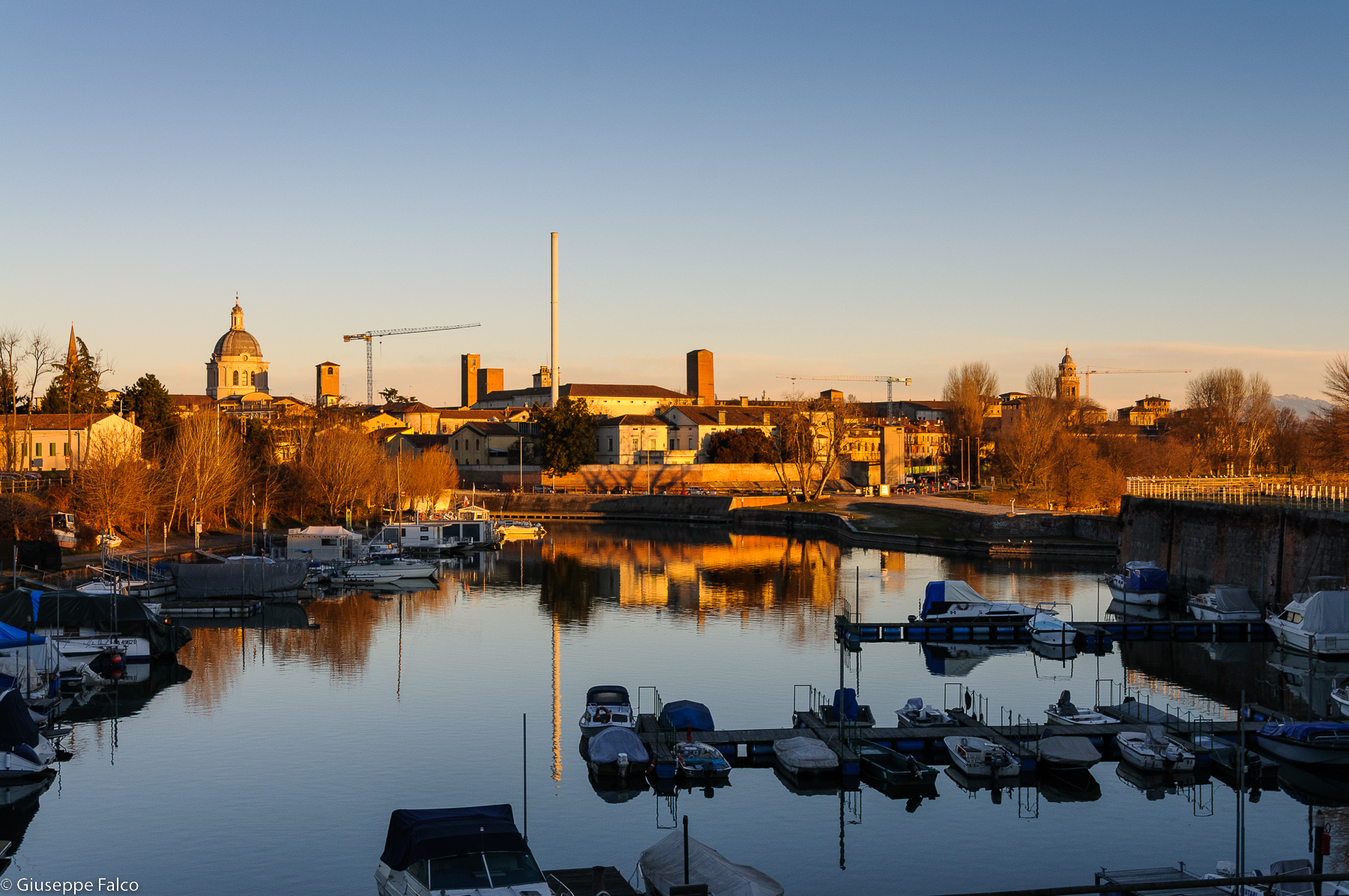 Gradevolissimo il modo in cui la scena si divide tra caldo e freddo, cosa che fa risaltare la carezza della luce sugli edifici, quasi a voler separare acqua e terra. Peccato per il taglio in basso con elementi di disturbo, ma immagino non fosse semplicemente comporre, salvo sacrificando una striscia di cielo e creando un equilibrio differente. Mi piace