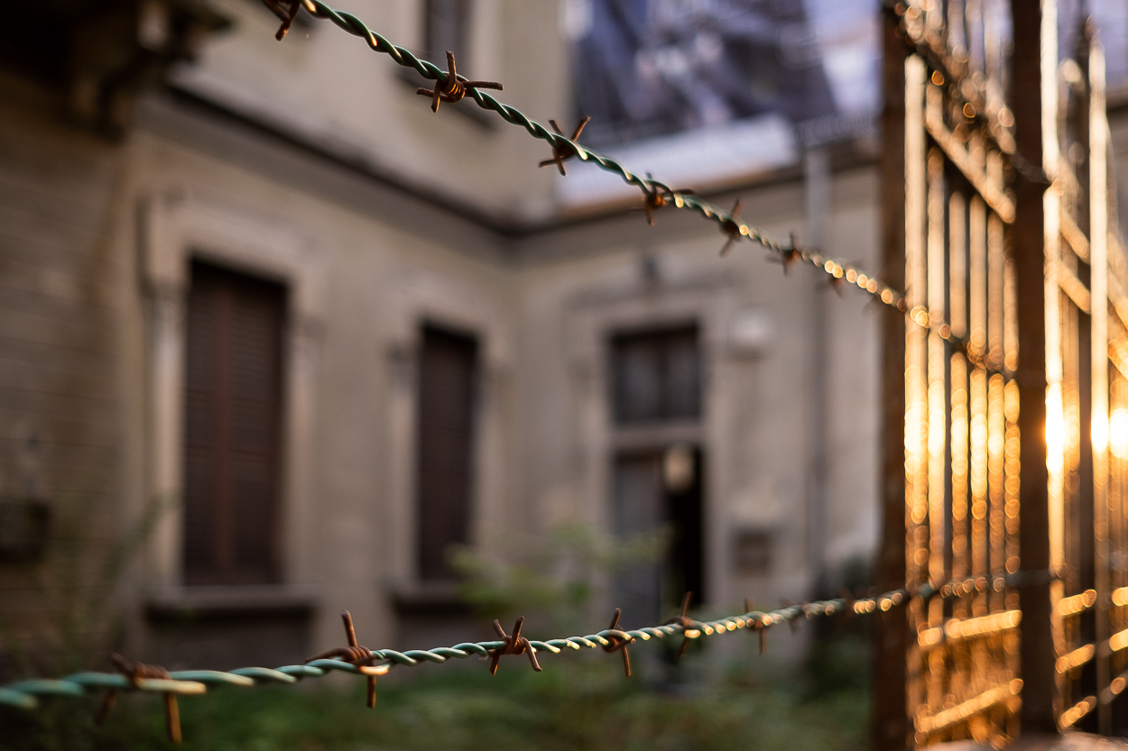 il filo spinato ricorda spesso luoghi di sofferenza e in questo caso qui è il protagonista della foto, ottimo lo sfocato e la luce calda che proviene dalla dx che sa di sopravvivenza, libertà e vita.