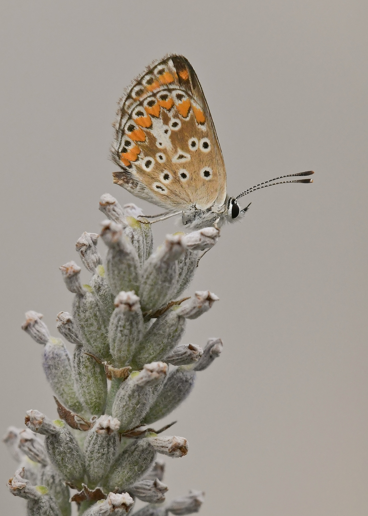 siamo sempre abituati a vedere le foto di questi soggetti con colori sgargianti e sfondi multicolori, invece, in questo caso, a parte la farfalla, quasi una monocromia, e ti dirò di più, mi piace tantissimo lo sfondo omogeneo e neutro, bravissimo.