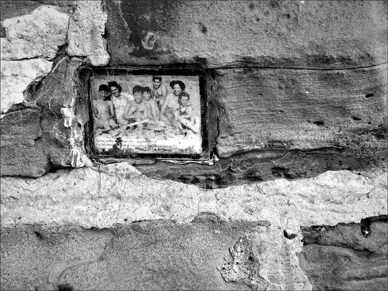 La salsedine, le intemperie, hanno un po sbiadito la foto ma non il ricordo. La foto, incastonata in mezzo alle pietre vive nel ricordo delle persone. Un bianconero di buona fattura. Ben vista _________________ Giuseppe |