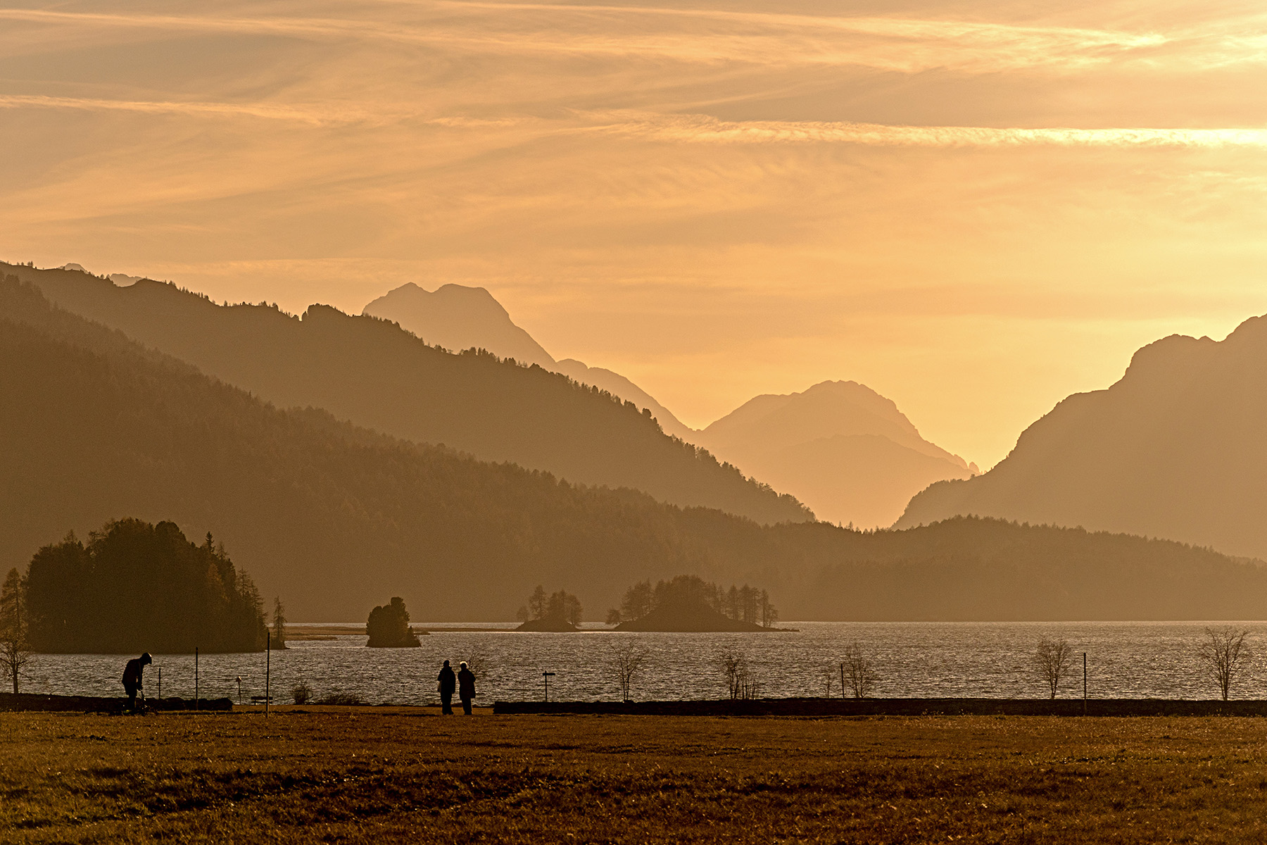 Successione di piani e tinte dorate, un bel panorama alpino.