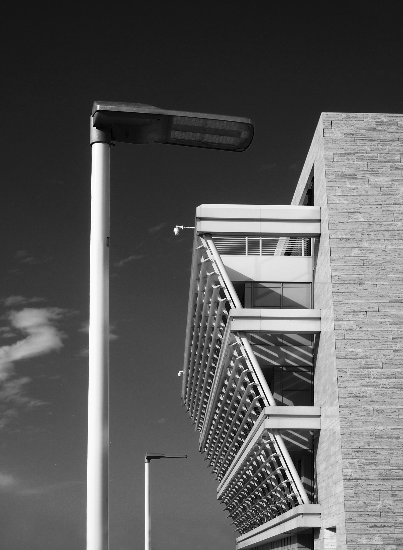 Composizione molto curata che mette ordine tra linee verticali,orizzontali,oblique in un dialogo tra lampioni e palazzo.Ottimo anche il bn ed il gioco di ombre interne alla truttura. Ciao,Sergio. _________________ Sergio Demitri https://www.flickr.com/photos/124946035@N02/ |