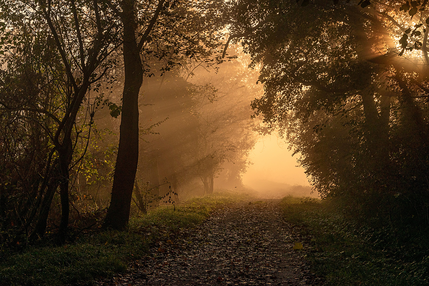 Una lama di luce del mattino, già inoltrato, ma ancora nebbioso.