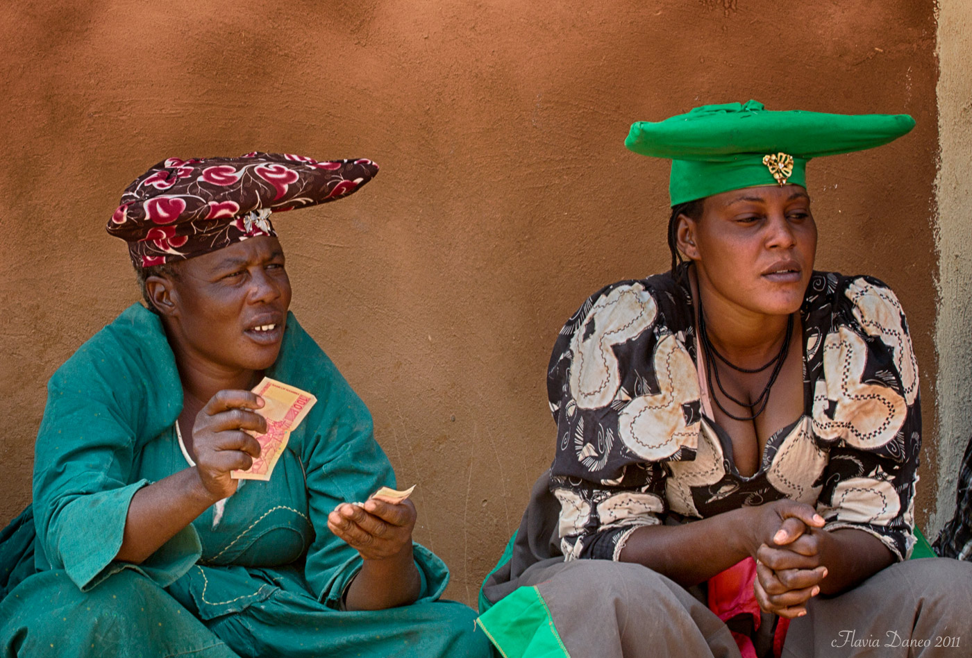 Sono donne di etnia herero. Sterminati dai coloni tedeschi, da questi le donne furono obbligate ad indossare lunghe vesti in stile vittoriano. I capelli invece vogliono ricordare le corna delle mucche, loro fonte primaria di sostentamento e ricchezza.