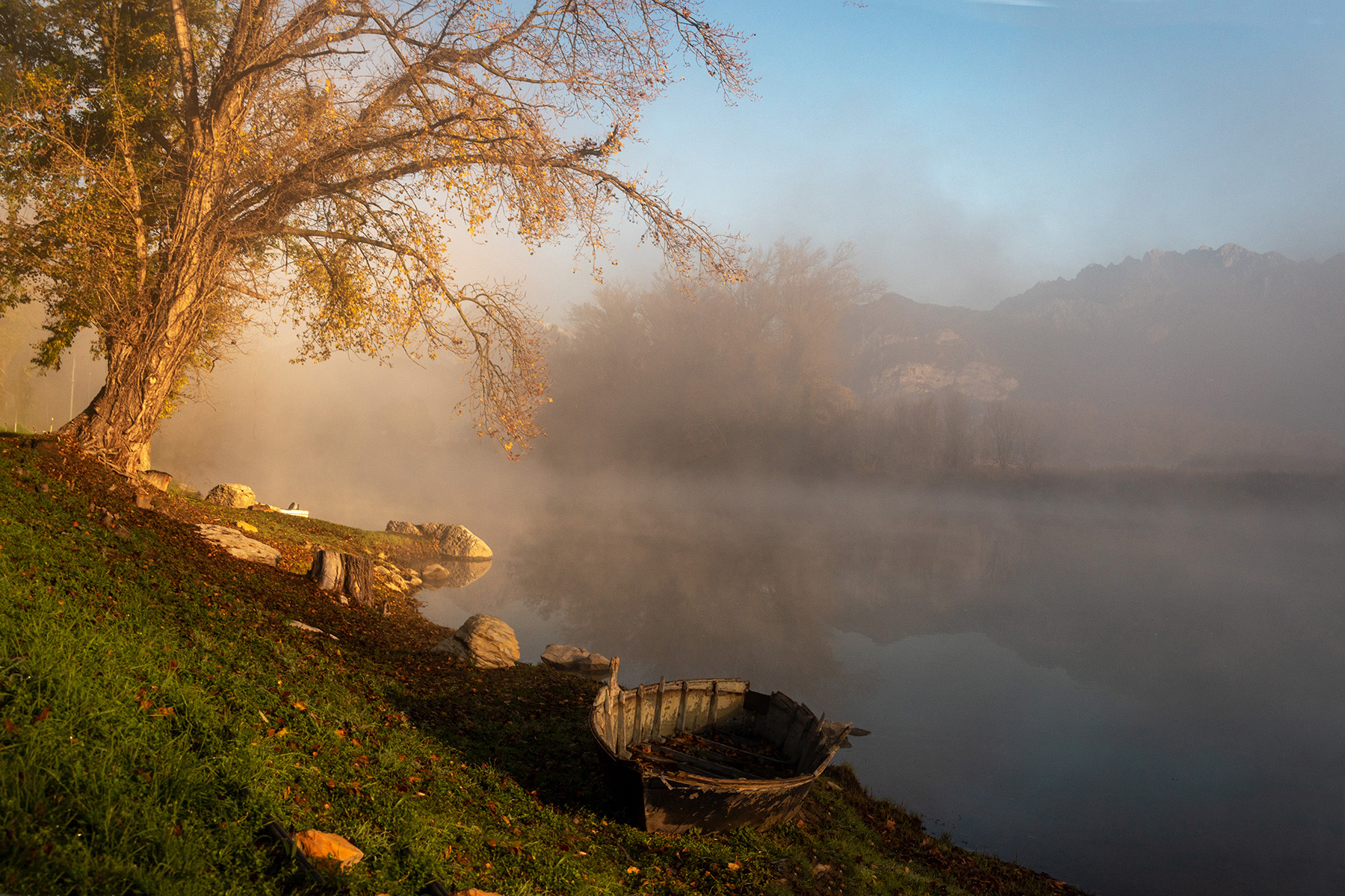 Molto bella questa luce dorata che irradia l'albero e la zona sottostante in contrapposizione con il cielo...la nebbia poi aggiunge fascino.