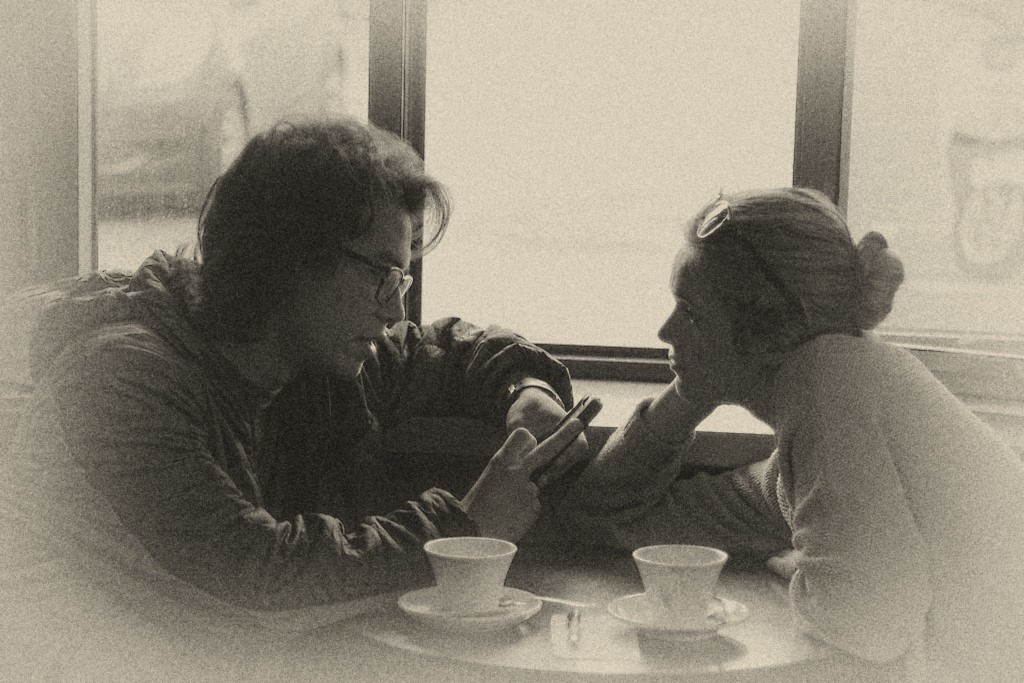La coppia è raccolta, intima; la grana utilizzata avvalora questo senso di intimità, raccoglimento. Anche la parte centrale della finestra, vuota, priva di elementi che potrebbero distrarre l'occhio, va in questa direzione. Neanche l'uso del cellulare da parte di lui distrae la ragazza da questo rapporto intenso, dal posare i suoi occhi su di lui. Chiudono bene l'immagine quelle due tazze a sigillare il momento importante. Bravo Tiziano! _________________ Giuseppe |