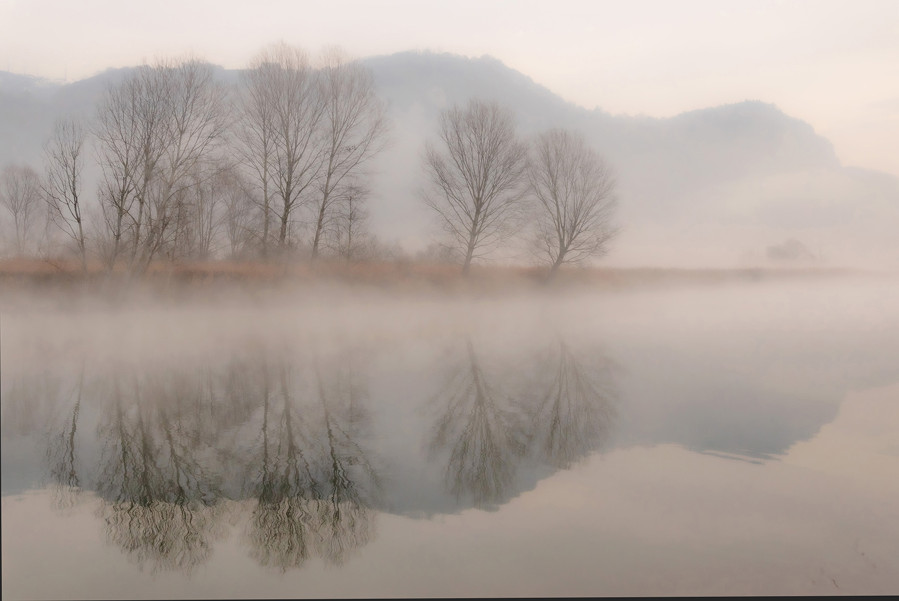Inquadratura molto gradevole, il riflesso completo degli alberi e del profilo montuoso e i toni di colore delicati sono molto apprezzabili. Ciao, Francesco _________________ Fotocamere Olympus OMD e PEN, Panasonic G3. Software GIMP