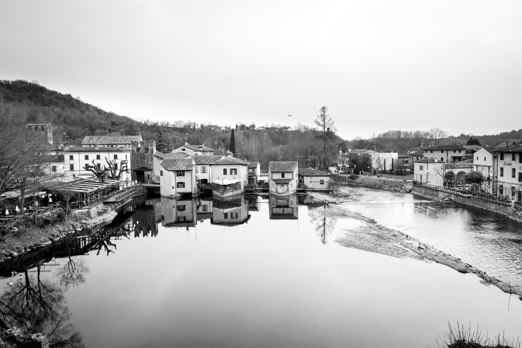 Castellaro Lagusello, un borgo interessante, ripreso dal ponte. Bello il riflesso. Sposto in Paesaggio.
