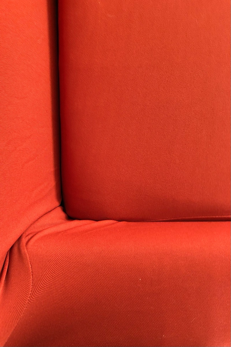 Vista dall'alto la poltrona assume una connotazione astratta. Hai isolato un particolare trasformandolo in altro di moderno e piacevolissimo complice anche il rosso vivace del tessuto