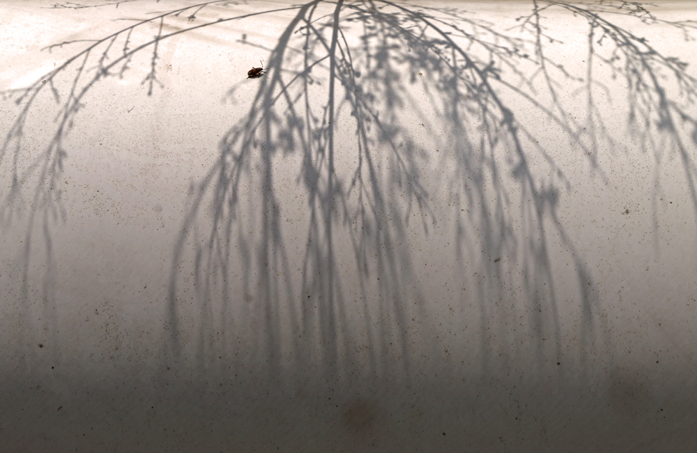 Due mondi che si intrecciano: quello reale dell'insetto e quello virtuale delle ombre. Una simbiosi perfetta.