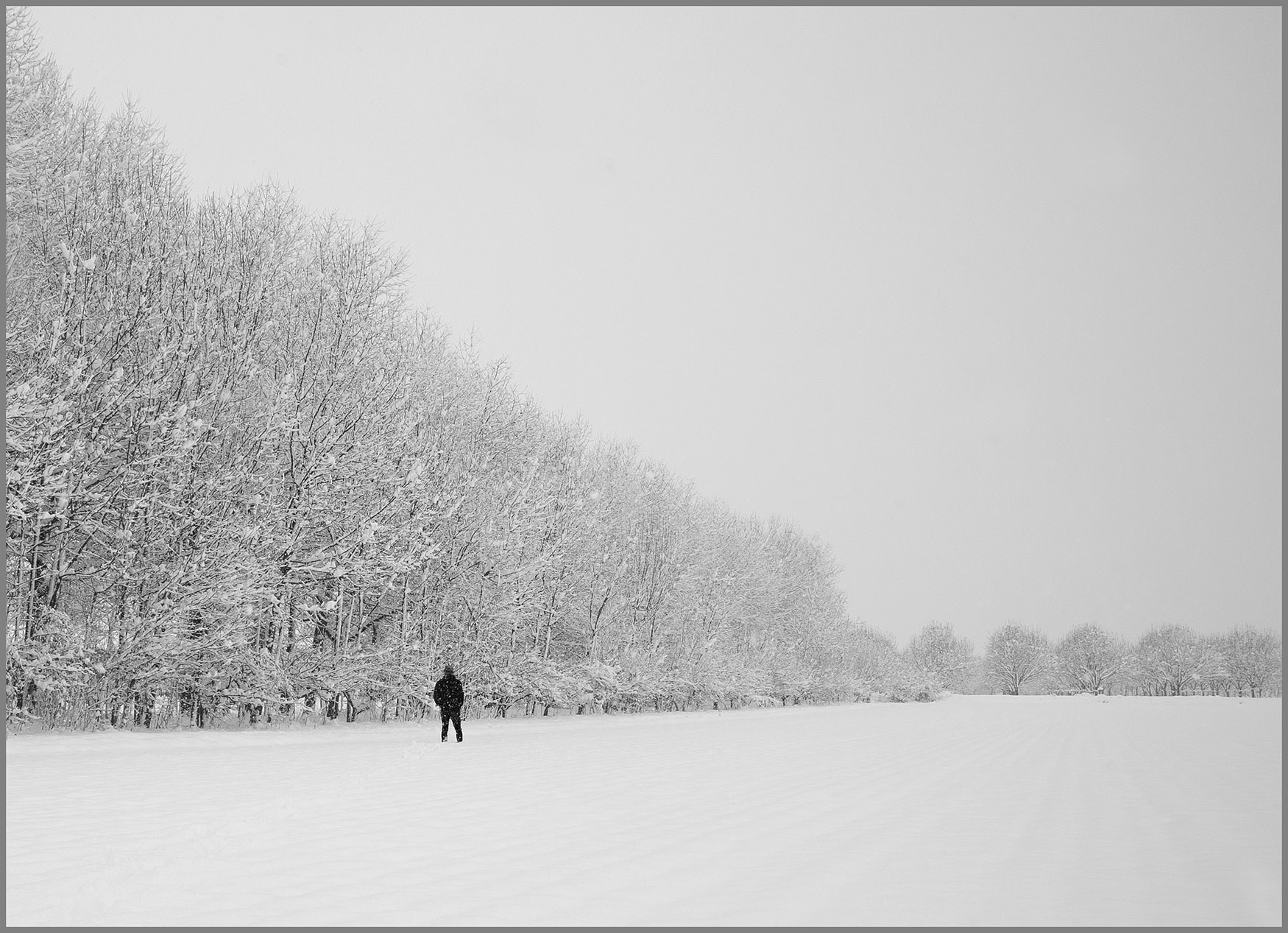 Sempre suggestive queste immagini di paesaggi innevati con figure solitarie… Bella anche la resa della neve sugli alberi, bravo