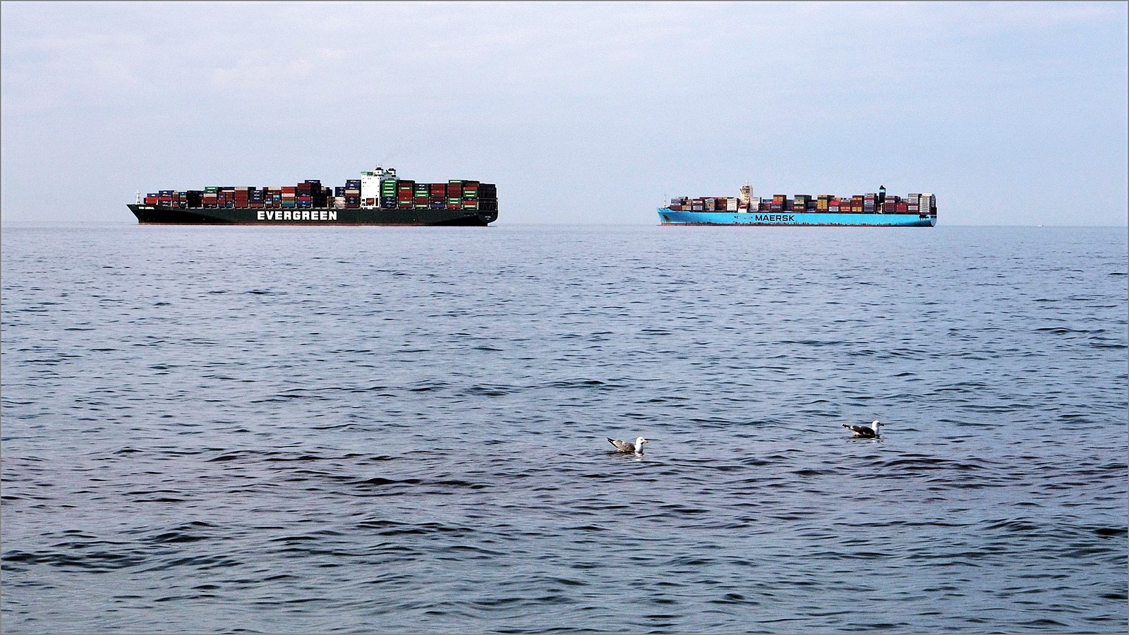 Questa sovrapposizione tra i due piccoli gabbiani e le due immense navi cargo è un ottima pensata e fotograficamente è molto efficace, giusto anche il rispettivo posizionamento nel frame.