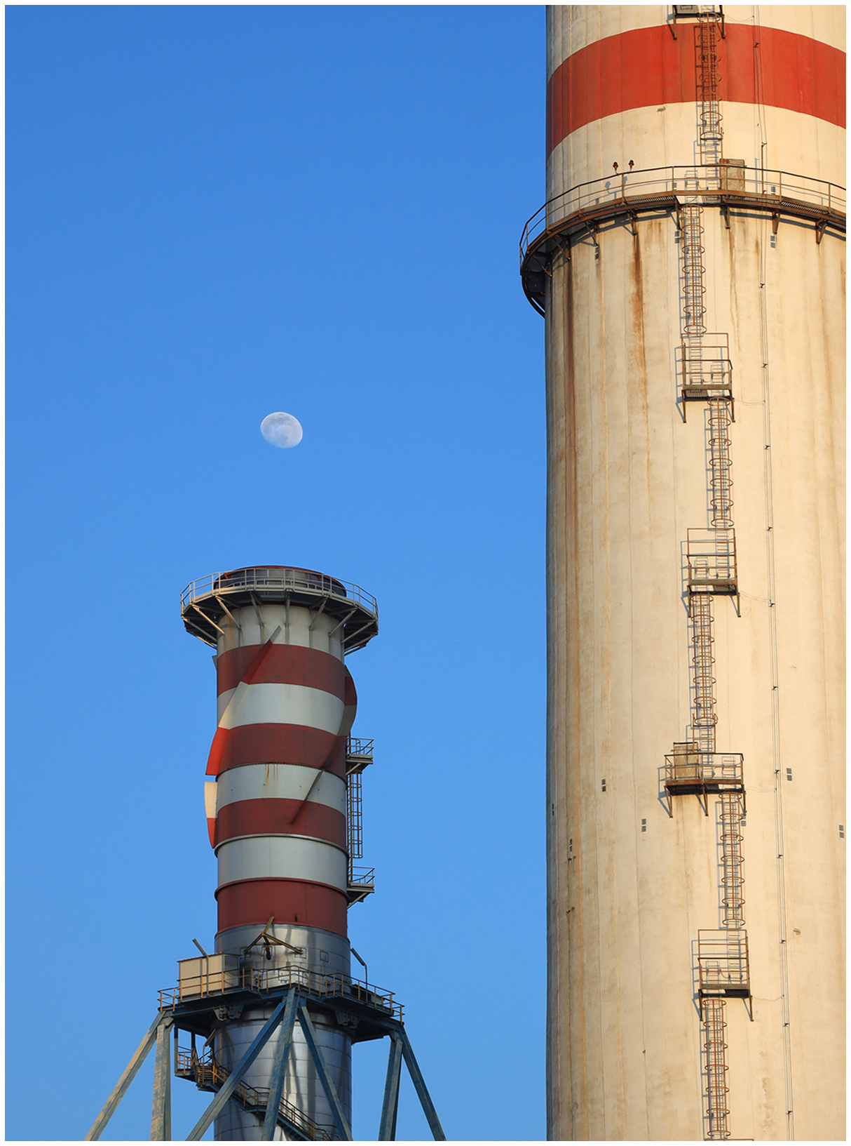Ottima, la luna sembra uno sbuffo della ciminiera! Bella la composizione, buoni i colori, impressionanti le dimensioni della prima ciminiera rapportate alle scale Bravissimo come sempre