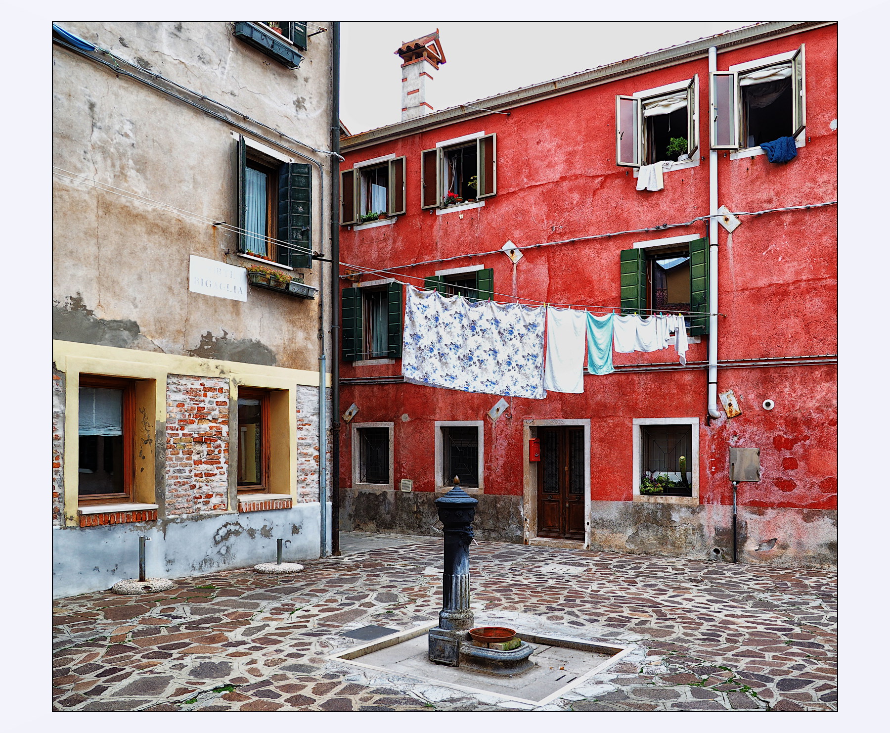 Forse il contrasto è leggermente eccessivo, da qui anche la lieve bruciatura dei bianchi, la scena è comunque carina, i colori accesi ma piacevoli, la fontana centrale direi che ci può stare ed i panni stesi fanno tanto vintage all'Italiana, molto buona anche la nitidezza.