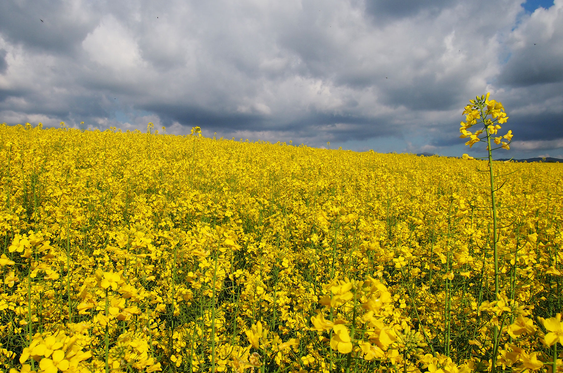 Il giallo è un colore che risalta molto. Se poi ci metti una distesa di colza che ben contrasta con un cielo carico di nuvole, la visione non può non essere affascinante.