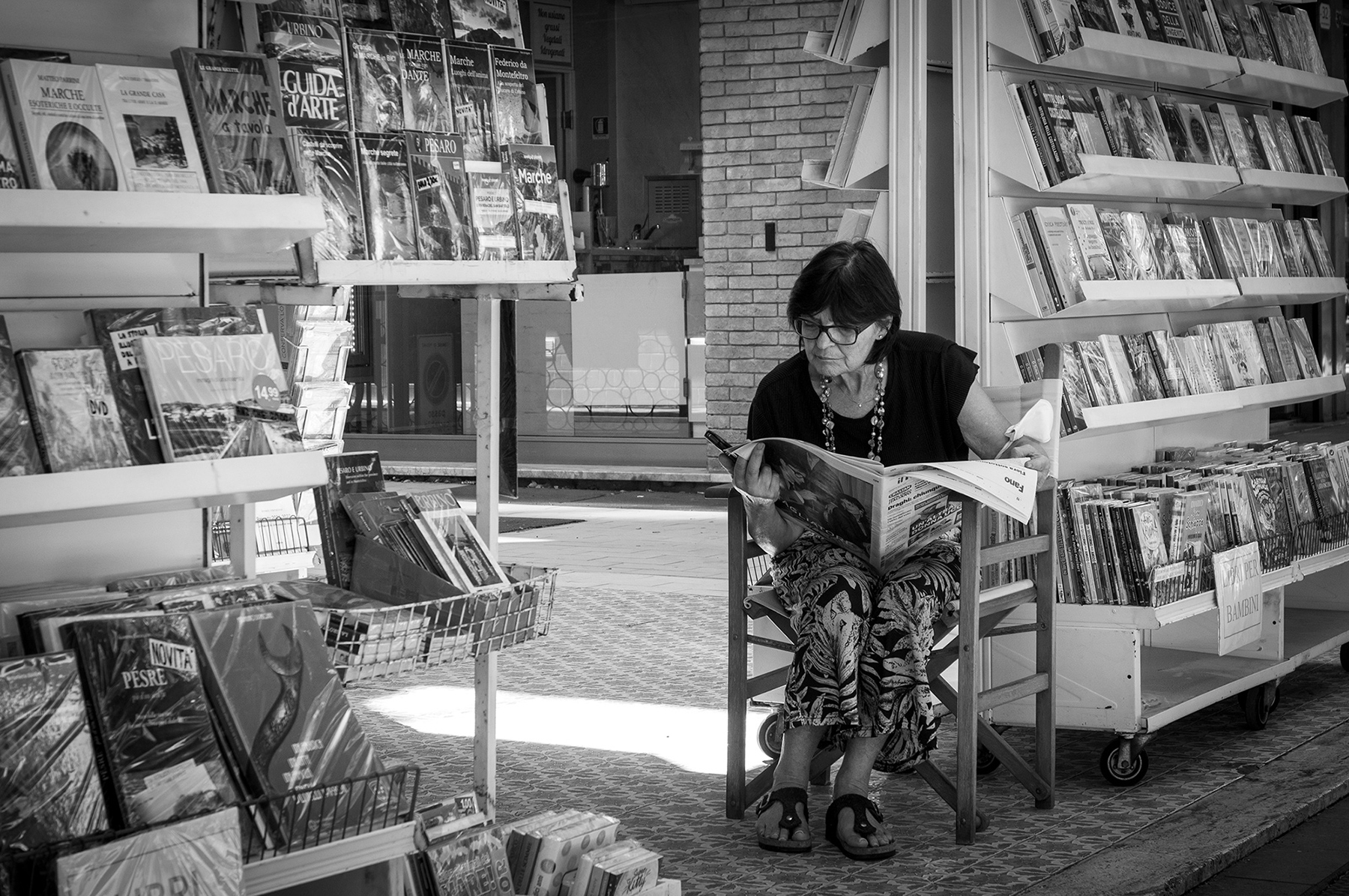 bel colpo Marco. Hai colto l'espressione interessata della signora che sta leggendo il giornale e l'hai collocata molto bene nella composizione. Per me potrebbe essere una street