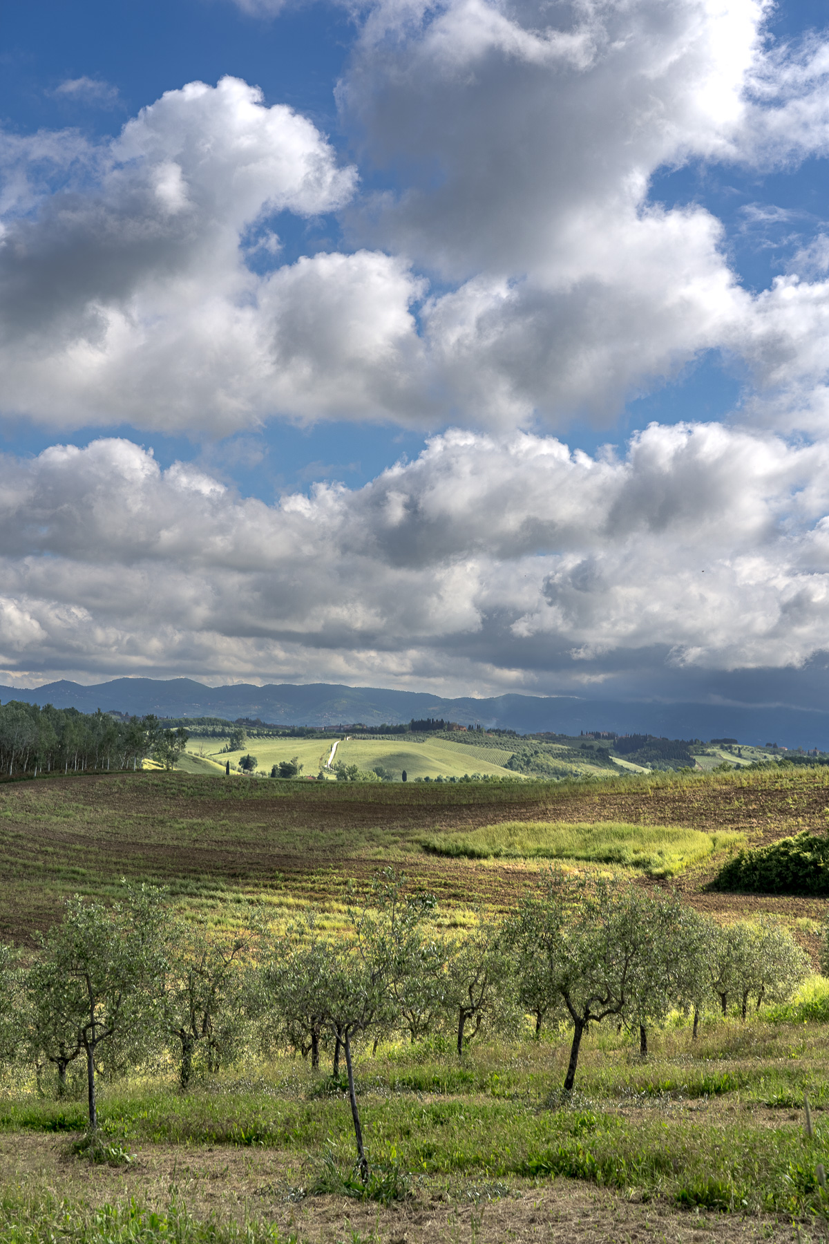 Dietro si apre il bel gioco di alture fra luci ed ombre di grande fascino. La generosa porzione di cielo ricca di corpose nuvole completa questo scorcio di grande fascino.