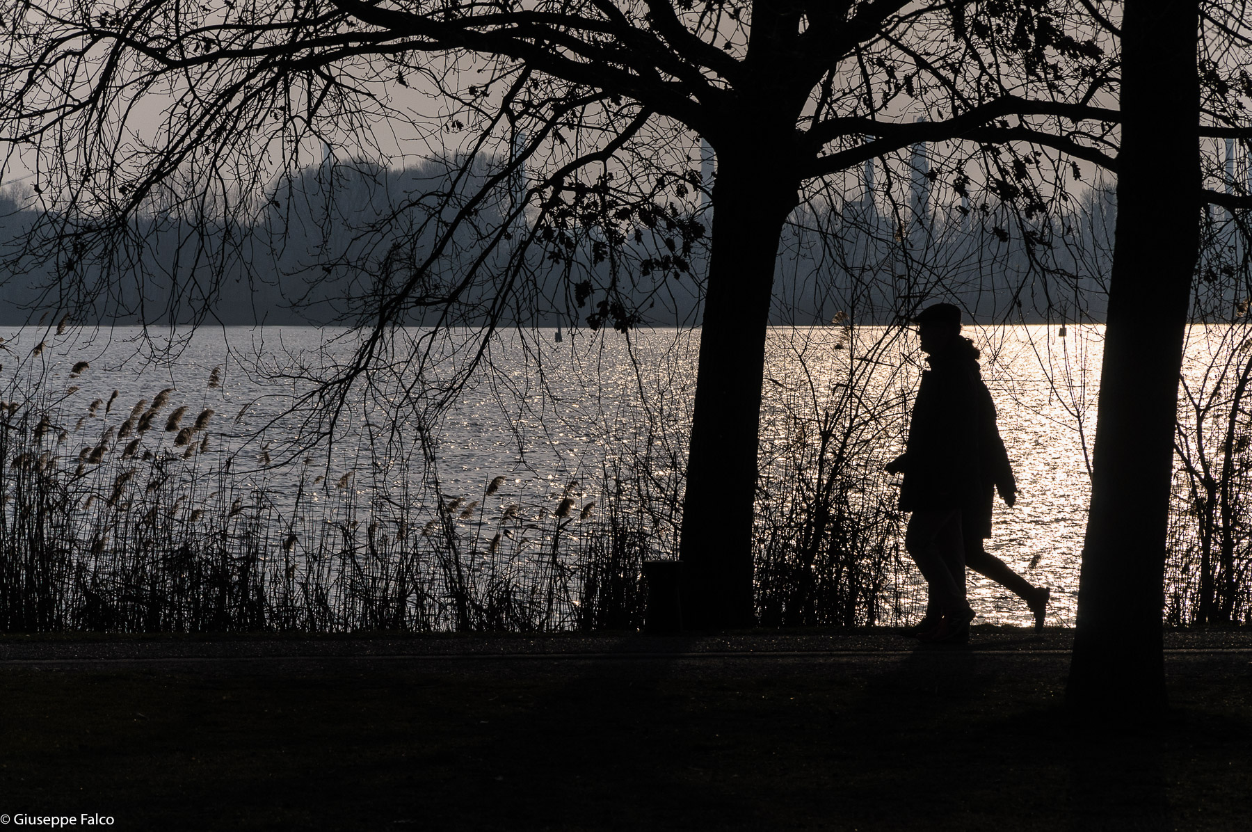 la passeggiata sul lago, un palcoscenico dove riprendere le silhouette dei passanti. Una buona ripresa ben gestita