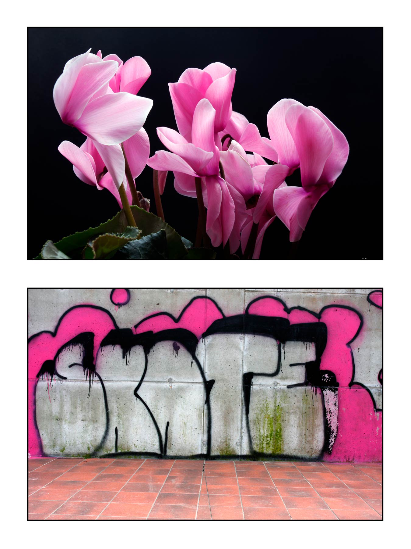 Il colore nella foto dei fiori occupa lo spazio positivo, mentre nell'altra è solo di contorno. Per quanto il richiamo cromatico ci sia, quello formale è a mio avviso del tutto assente.